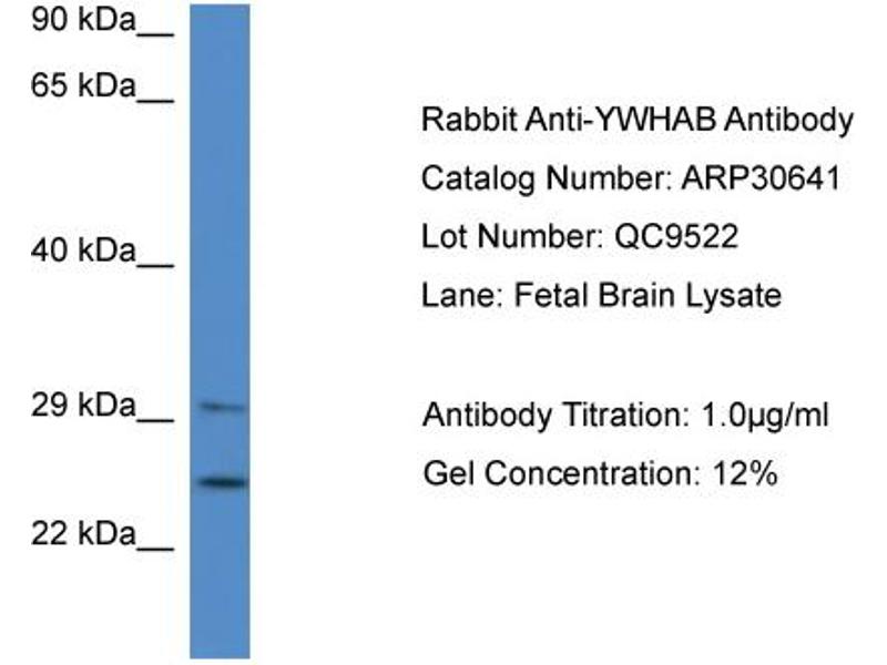 YWHAB Reactivité: Humain, Souris, Rat, Poisson zèbre (Danio rerio), Boeuf (Vache), Chien, Xenopus laevis, Poulet, Primate WB Hôte: Lapin Polyclonal unconjugated