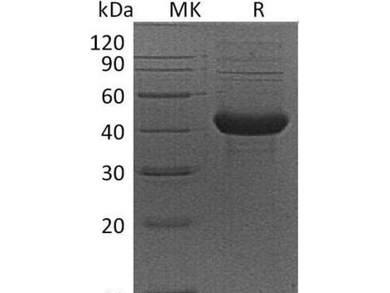 The purity of the protein is greater than 95 % as determined by SDS-PAGE and Coomassie blue staining.