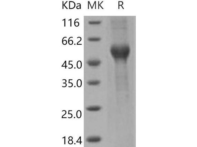The purity of the protein is greater than 95 % as determined by SDS-PAGE and Coomassie blue staining.