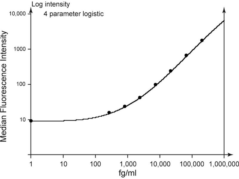 This BD CBA Enhanced Sensitivity Flex Set contains one vial each of Enhanced Sensitivity Capture Bead and Detection Reagent (Part A) and two vials of Standard. The Enhanced Sensitivity Detection Reagent (Part B) is provided in the BD CBA Mouse Enhanced Sensitivity Master Buffer Kit. The Enhanced Sensitivity Capture Bead and Detection Reagent (Part A) components of this flex set have been formulated to a 20× concentration to ensure product performance when multiplexed. The Standard component is lyophilized and when reconstituted according to the instructions in the BD CBA Mouse Enhanced Sensitivity Master Buffer kit, the top standard point for this assay is 200,000 fg/ml. Discard unused reconstituted standard, do not store or reuse. Store lyophilized standard and other components at 4°C. -