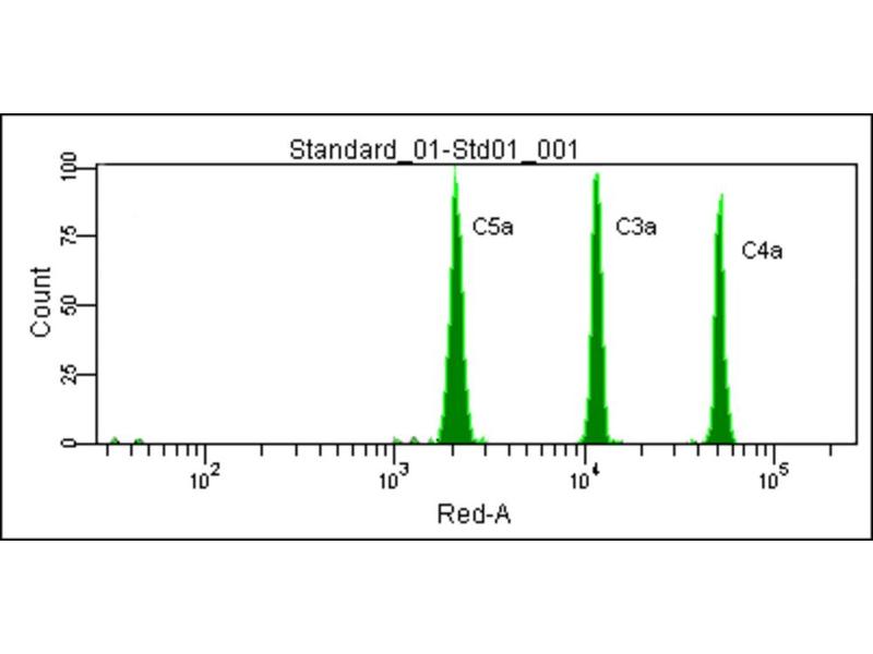Reagents for capture and detection of C4a, C3a, and C5a, standards, wash buffer, assay diluent, cytometer setup reagents