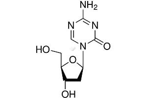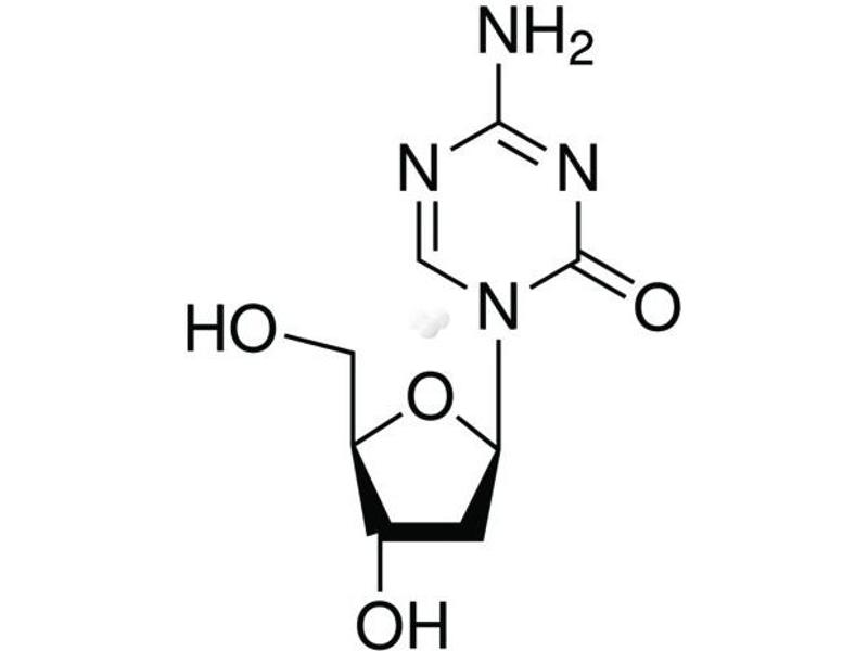 Cytosine analog, that when incorporated into DNA, acts as a suicide substrate for DNA methyltransferase. Inhibits DNA methyltransferase and results in DNA hypomethylation and activation of silent genes. Chemotherapeutic agent, suppresses growth of human tumor cell lines. Demethylates differentiation-related genes, reverses embryonic stem cell differentiation. Decitabine is an epigenetic modifier that gives rise to DNA demethylation (hypomethylation) and gene activation by remodeling 'opening' chromatin. Genes are synergistically reactivated when demethylation is combined with histone hyperacetylation. This remodeling of chromatin structure allows transcription factors to bind to the promoter regions, assembly of the transcription complex, and gene expression.