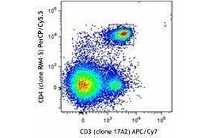 - This reagent contains one vial each of APC/Cy7 conjugated anti-CD3 (clone 17A2), PerCP/Cy5.5 conjugated anti-CD4 (clone RM4-5), APC conjugated anti-CD62L (clone MEL-14), and PE conjugated anti-CD44 (clone IM7) at optimal concentration for four-color flow cytometric analysis.