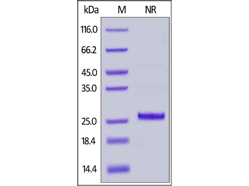 The purity of the protein is greater than 95 % as determined by SDS-PAGE and Coomassie blue staining.