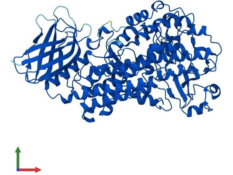 This gene encodes a member of the lipoxygenase gene family and plays a dual role in the synthesis of leukotrienes from arachidonic acid. The encoded protein, which is expressed specifically in bone marrow-derived cells, catalyzes the conversion of arachidonic acid to 5(S)-hydroperoxy-6-trans-8,11,14-cis-eicosatetraenoic acid, and further to the allylic epoxide 5(S)-trans-7,9-trans-11,14-cis-eicosatetrenoic acid (leukotriene A4). Leukotrienes are important mediators of a number of inflammatory and allergic conditions. Mutations in the promoter region of this gene lead to a diminished response to antileukotriene drugs used in the treatment of asthma and may also be associated with atherosclerosis and several cancers. Alternatively spliced transcript variants encoding different isoforms have been found for this gene. [provided by RefSeq, Jan 2012].