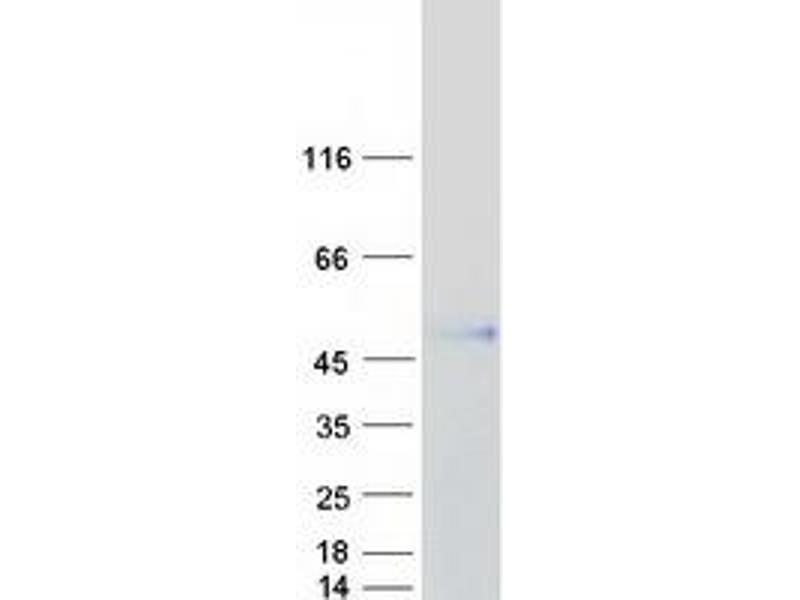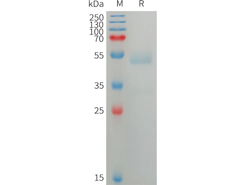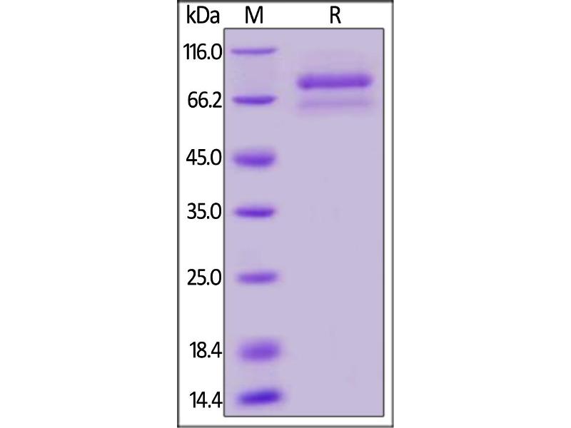 The purity of the protein is greater than 85 % as determined by SDS-PAGE and Coomassie blue staining.