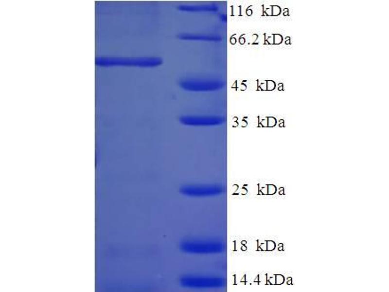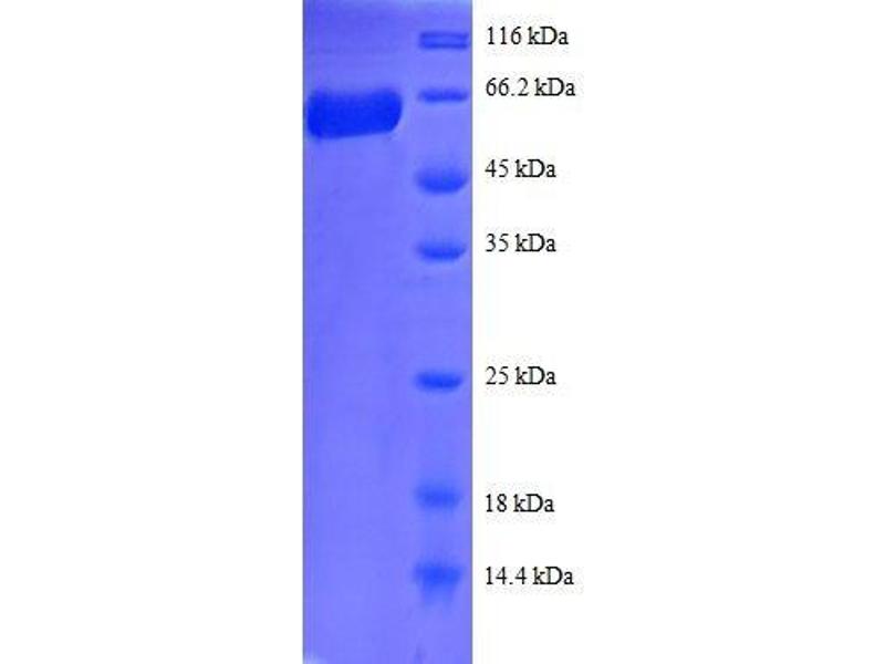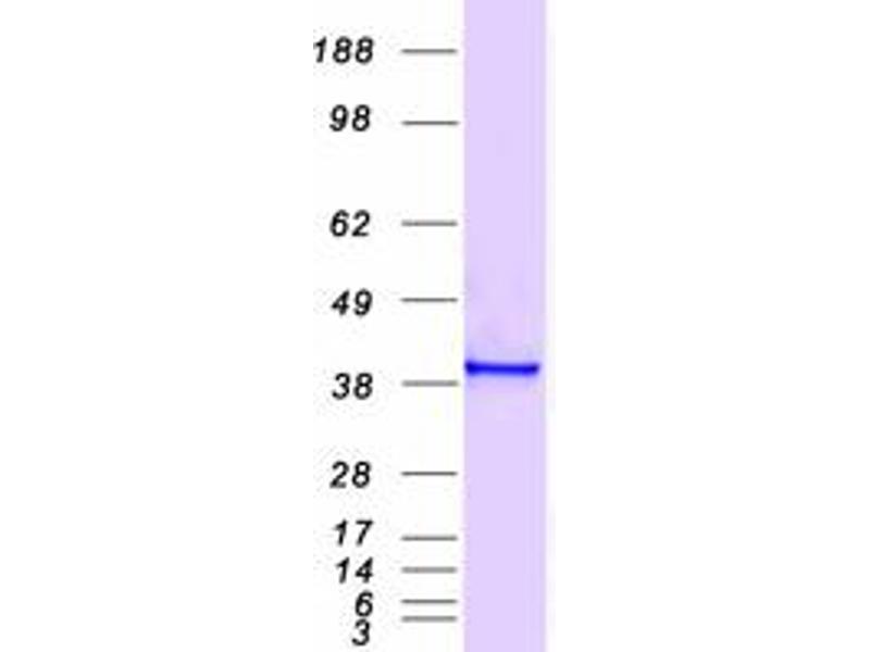 The purity of the protein is greater than 85 % as determined by SDS-PAGE and Coomassie blue staining.
