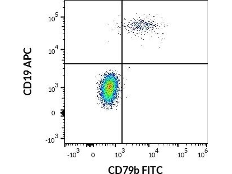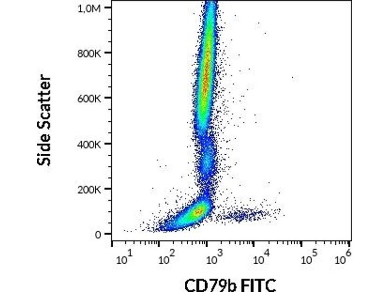 Cet anticorps anti-CD79b Monoclonal Souris conjugué à FITC (Clone CB3-1) (ABIN1027695) détecte spécifiquement CD79b dans FACS.
