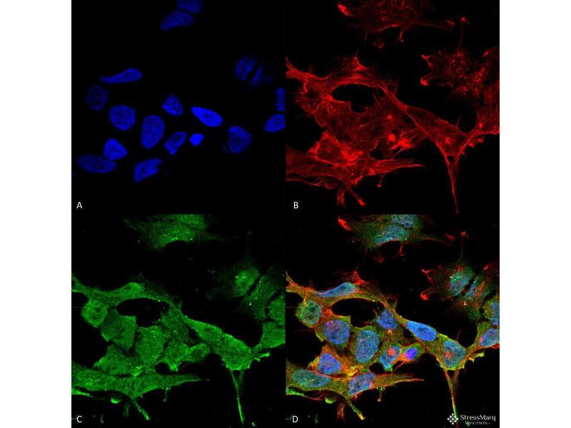 1 μg/ml of ABIN1027722 was sufficient for detection of Clcn3 in 20 μg of rat brain membrane lysate and assayed by colorimetric immunoblot analysis using goat anti-mouse IgG:HRP as the secondary antibody.