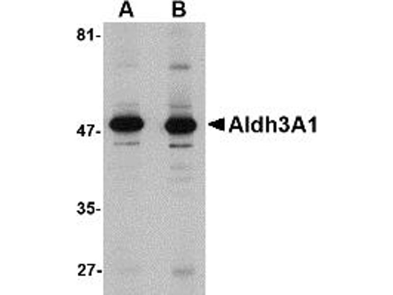 Aldh3A1 antibody can be used for detection of Aldh3A1 by Western blot at 1 - 2 μg/mL.