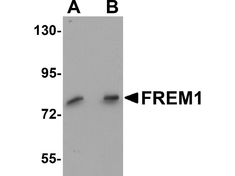 FREM1 antibody can be used for detection of FREM1 by Western blot at 0.5 - 1 μg/mL.
