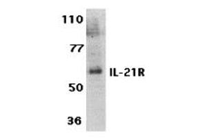 IL-21 receptor antibody can be used for detection of IL-21 receptor by Western blot at 0.5 to 1 μg/mL. An approximately 60 kDa band can be detected.