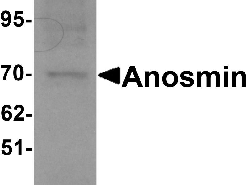 - Anosmin antibody can be used for detection of Anosmin by Western blot at 1 - 2 μg/mL.