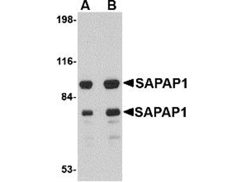 SAPAP1 antibody can be used for detection of SAPAP1 by Western blot at 0.5 - 1 μg/mL.