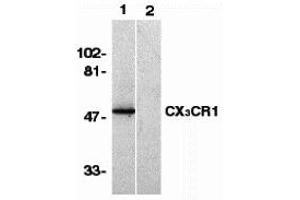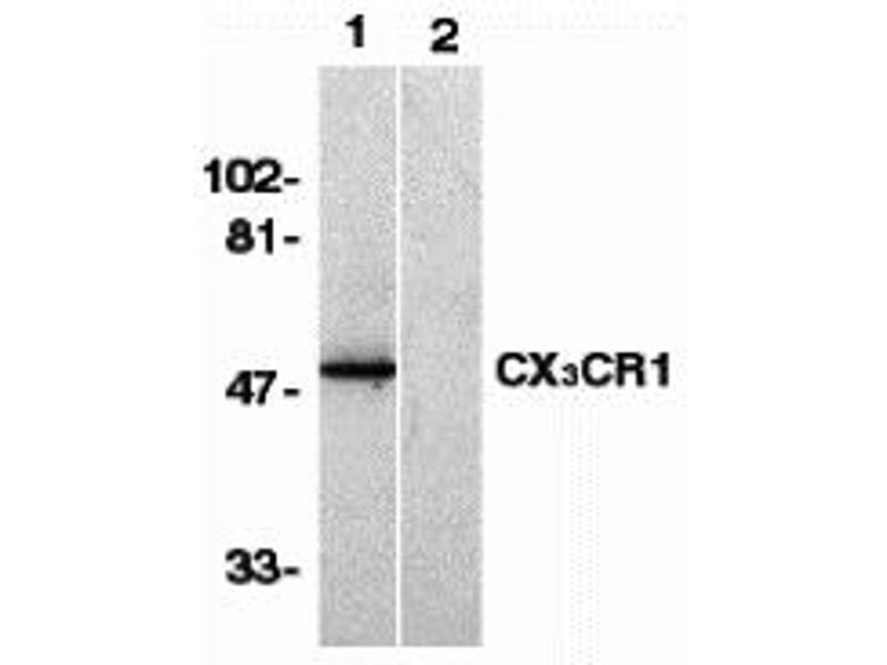 CX3CR1 antibody can be used for detection of CX3CR1 by Western blot at 1:500 to 1:2000 dilution. An approximately 50 kDa band can be detected.