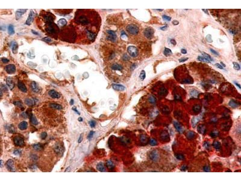 - Human GHRHR. BLAST analysis of the peptide immunogen showed no homology with other human proteins.