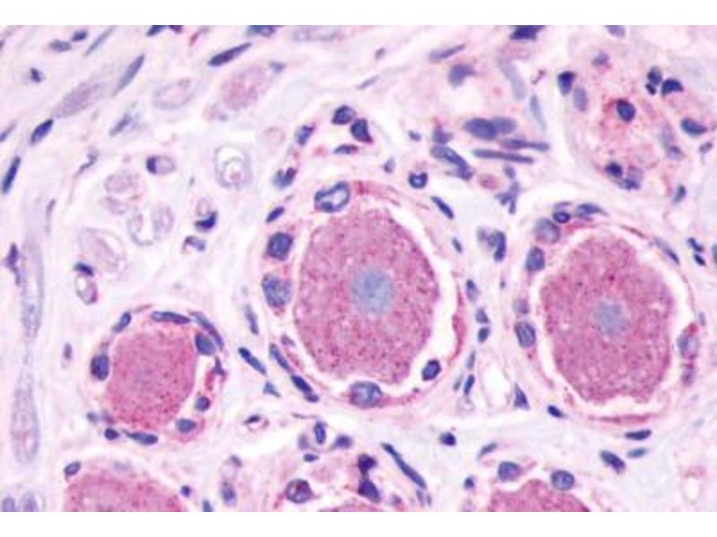 - Human MRGPRE. BLAST analysis of the peptide immunogen showed no homology with other human proteins.