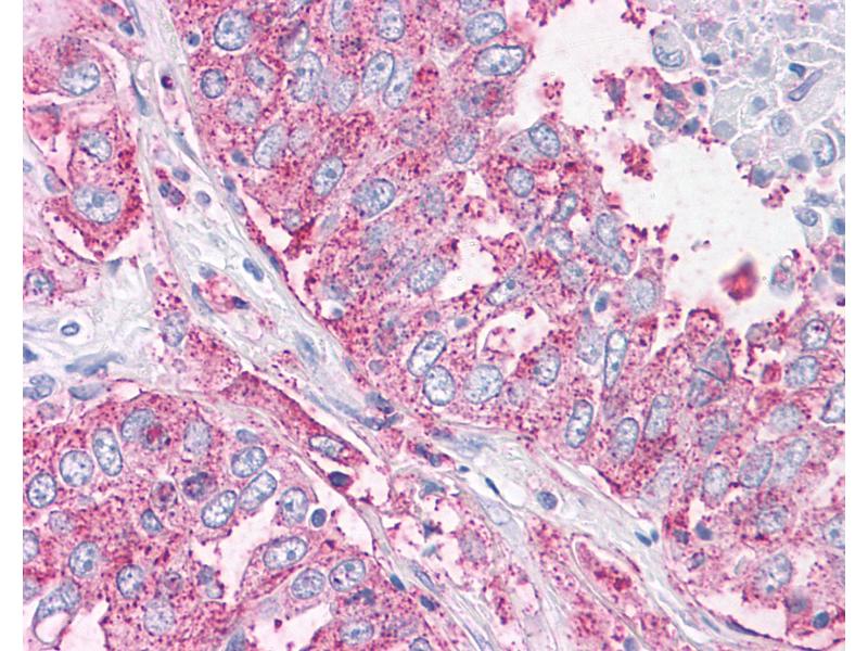 Usage: Immunohistochemistry: This antibody was validated for use in immunohistochemistry on a panel of 21 formalin-fixed, paraffin-embedded (FFPE) human tissues after proteinase K antigen retrieval. After incubation with the primary antibody, slides were incubated with biotinylated secondary antibody, followed by alkaline phosphatase-streptavidin and chromogen. The stained slides were evaluated by a pathologist to confirm staining specificity. The optimal working concentration for this antibody was determined to be 7 μg/mL. -