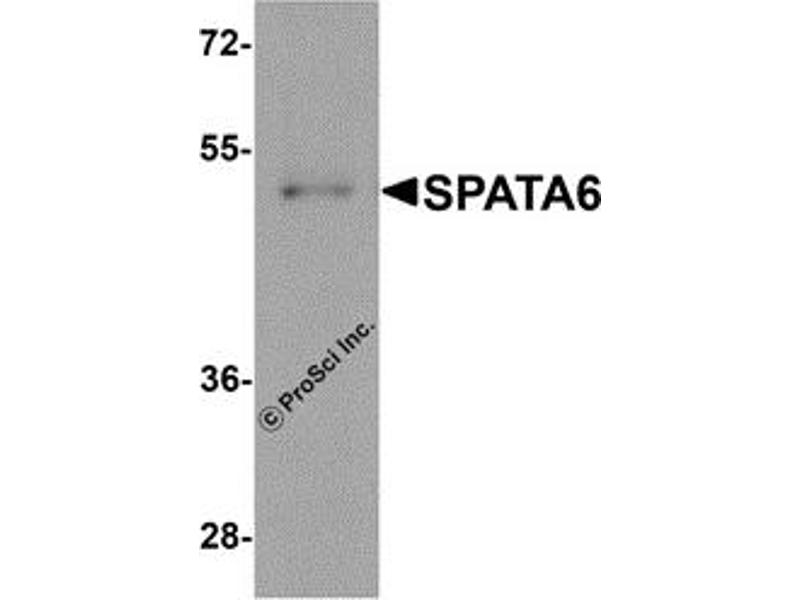 - SPATA6 antibody can be used for detection of SPATA6 by Western blot at 1 μg/mL. Antibody can also be used for immunohistochemistry starting at 2.5 μg/mL. For immunofluorescence start at 20 μg/mL. Optimal dilutions for each application to be determined by the researcher.