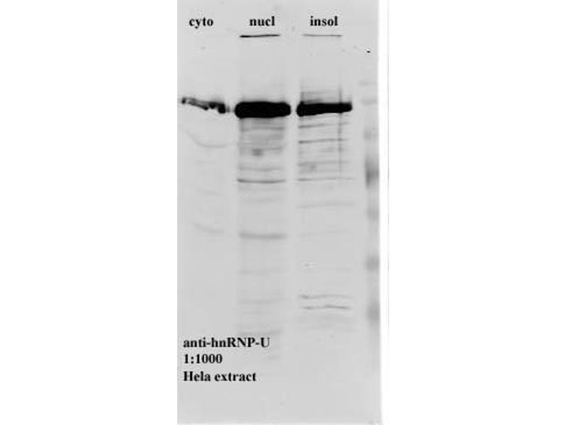 Heterogeneous nuclear ribonucleoprotein U antibody,hnRNP U protein antibody,HNRNPU antibody,hnRNPUprotein antibody,HNRPU antibody,p120 antibody,p120 nuclear protein antibody,pp120 antibody,SAF Aantibody,SAF-A antibody,SAFA antibody,Scaffold attachment factor A antibody,U21.1antibody -