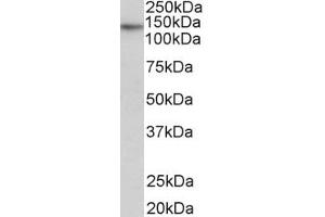 Usage: Peptide ELISA: antibody detection limit dilution 1:32000. Western blot: Approx 140kD band observed in Human Heart and Skeletal Muscle lysates (calculated MW of 127kD according to NP_937983.2). Recommended concentration: 0.3-1 μg/mL. -
