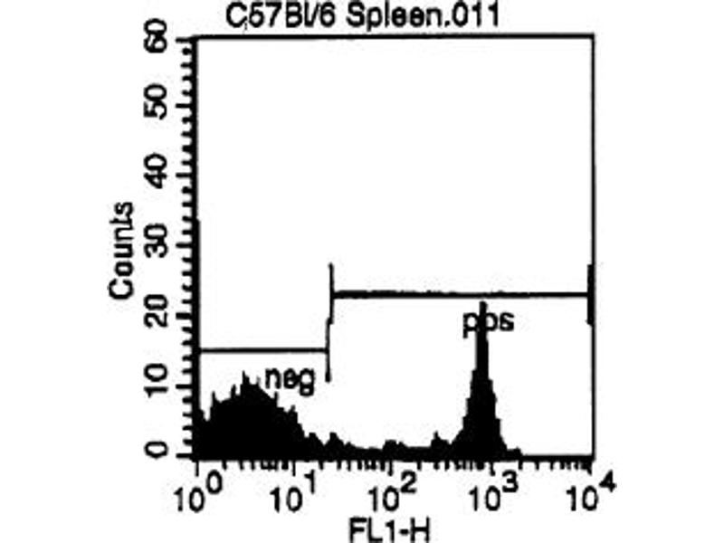 - FLOW CYTOMETRY ANALYSIS: Method: 1. Prepare a cell suspension in media A. For cell preparations, deplete the red blood cellpopulation with Lympholyte®-M cell separation medium. 2. Wash 2 times. 3. Resuspend the cells to a concentration of 2x10e7 cells/ml in media A. Add 50 µl of thissuspension to each tube (each tube will then contain 1 x 10e6 cells, representing 1 test). 4. To each tube, add ~1. 0 µg* of this Ab per 1x10e6 cells. 5. Vortex the tubes to ensure thorough mixing of antibody and cells. 6. Incubate the tubes for 30 minutes at 4°C. (It is recommended that the tubes areprotected from light, since most fluorochromes are light sensitive. )7. Wash 2 times at 4°C. 8. Resuspend the cell pellet in 50 µl ice cold media B. 9. Transfer to suitable tubes for flow cytometric analysis containing 15 µl of propidiumiodide at 0. 5 mg/ml in PBS. This stains dead cells by intercalating in DNA. Media: A. Phosphate buffered saline (pH 7. 2) + 5% normal serum of host species + sodium azide(100 µl of 2M sodium azide in 100 mls). B. Phosphate buffered saline (pH 7. 2) + 0. 5% Bovine serum albumin + sodium azide (100µl of 2M sodium azide in 100 mls).