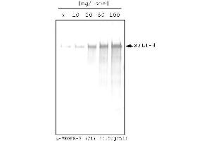 ELISA: 0.5-1.5 μg/mL in direct ELISA, allows detection of 0.25-0.5 ng/well. Immunohistochemistry: 1-10 μg/mL. Western blot 0.5-1 μg/mL, detection limit is approximately 5 ng/lane under reducingconditions. Other applications not tested. Optimal dilutions are dependent on conditions and should be determined by the user.
