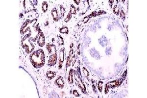 Immunohistochemistry on Formalin-Fixed Paraffin Embedded Sections: 1/25-1/50 in anABC method (30 minutes at room temperature). Formalin fixed paraffin embedded tissue sections require high temperature antigenunmasking with 10 mM citrate buffer, pH 6.0 prior to immunostaining. Recommended Positive Control: Prostate carcinoma. Other applications not tested. Optimal dilutions are dependent on conditions and should be determined by the user.