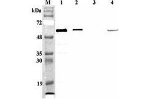 - Recognizes mouse FTO. Detects a band of ~58 kDa by Western blot.