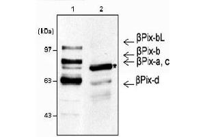 Beta-PIX acts as a RAC1 guanine nucleotide exchange factor (GEF) and can induce membrane ruffling. It interacts with PAK kinases through the SH3 domain. It may function as a positive regulator of apoptosis and is involved in cell migration. It is expressed with high levels in the central nervous system.