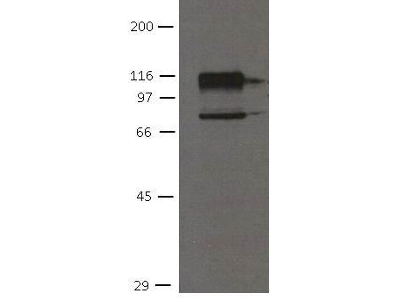 - Optimal antibody dilution should be determined by titration, however as a guideline try, WB: 1/100. Predicted molecular weight: 87 kDa