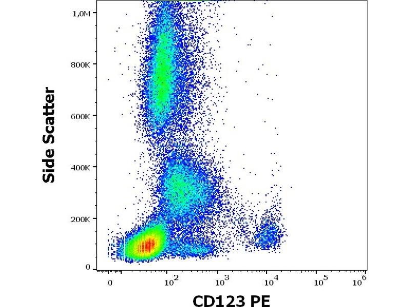 The mouse monoclonal antibody 6H6 recognizes an extracellular epitope of CD123 (interleukin 3 receptor alpha), a 60-70 kDa transmembrane protein expressed by myeloid precursors, megakaryocytes, macrophages, dendritic cells, mast cells, basophils, and some B cells. This antibody does not inhibit IL-3 binding to its receptor.