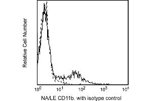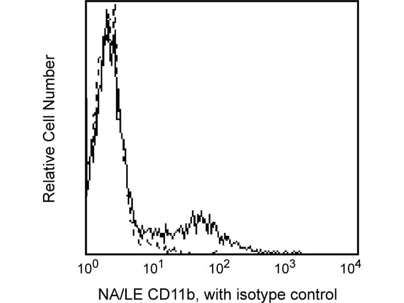 The ICRF44 monoclonal antibody reacts with CD11b, the 165-kDa adhesion glycoprotein that associates with the 95-kDa integrin beta2 (CD18) to form the CD11b/CD18 complex, also known as Mac-1 or CR3. CD11b is expressed on activated lymphocytes, monocytes, granulocytes, and a subset of NK cells. CD11b functions in cell-cell and cell-substrate interactions and is a receptor for iC3b, CD54 (ICAM-1), CD102 (ICAM-2) and CD50 (ICAM-3). This antibody significantly inhibits polymorphonuclear leukocyte aggregation in response to fMLP.