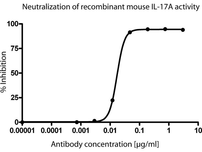 The TC11-18H10 antibody reacts with recombinant and natural mouse IL-17A proteins. IL-17A, also known as CTLA-8, is a T cell-derived cytokine that promotes inflammatory responses. Mouse IL-17A is a proinflammatory cytokine that can induce the release of IL-6 by mouse stromal cells. It has been shown to support the growth of hemopoietic progenitors in vitro, it can also stimulate granulopoiesis in vivo. The TC11-18H10 antibody has been reported to neutralize IL-17A activity. Recent studies have shown that IL-17A is produced by a unique subset of Th17 cells that develop along a pathway distinct from the Th1- and Th2- cell differentiation pathways. The mouse IL-17A cDNA was isolated from a cDNA library generated from TCRalphabeta+CD4-CD8- thymocytes. Functional studies of TC11-18H10 mAb by neutralization of mouse IL-17A bioactivity. Recombinant mouse IL-17A (2 ng/well) was pre-incubated with various amounts of TC11-18H10 mAb or medium as a control in a 96-well plate for 1 hour at 37°C. Following the incubation, NIH-3T3 cells were added at 5x10^4 cells per well and incubated at 37°C. After 24 hours of incubation, the supernatant was harvested and the concentration of IL-6 was quantified using BD™ Cytometric Bead Array Mouse IL-6 Flex Set (Cat. No. 558301). Synonyms: Interleukin-17A, Il17a, Cytotoxic T-lymphocyte-associated antigen, CTLA-8