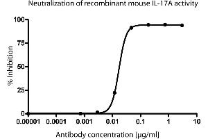 This procedure is to be used for blocking, it is not routinely tested for each batch. 1. In the appropriate tissue culture medium dilute TC11-18H10 NA/LE mAb with the highest concentration of 12 µg/ml at a 1:4 series dilution in the tissue culture hood for a total of 7 different concentrations. 2. Add 50 µl into each well. For the negative control, add 50 µl tissue culture medium. 3. Set the triplicate for each testing concentration of TC11-18H10 NA/LE antibody . 560268 4. Dilute the rmIL-17A in the tissue culture medium to 40 ng/ml. Add 50 µl into each well. Tap the plate to mix the mAb and rmIL-17A together. 5. Incubate the plate in 37°C, 5% CO2 incubator for 1 hour. 6. Count the log phase NIH-3T3 cells and dilute the cells to 5x10^5 cell/ml. Seed 100 µl cells into each well. 7. Incubate the cells in 37°C, 5% CO2 incubator for 24 hours. 8. Harvest the supernantant. Check the IL-6 concentration from each well using the BD Cytometric Bead Array Mouse IL-6 Flex Set. 9. Calculate the IL-6 concentration of each well from the standard curve. Calculate the mean of each concentration triplicate and plot a chart