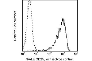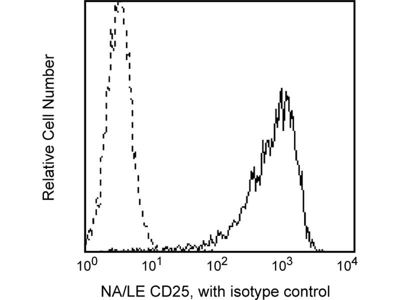 Reacts with CD25, a 55 kDa glycoprotein known as the low-affinity interleukin-2 receptor (IL-2R). CD25 is expressed on activated lymphocytes (T and B) and monocytes, and associates with the p75 high-affinity receptor chain to form the IL-2R complex. The CD25 molecule reveals three epitope regions: A, B, and C. M-A251 antibody recognizes epitope region B. CD25 expression on lymphocytes is upregulated by anti-CD3 or PHA stimulation. Soluble IL-2R is produced following inflammatory responses. This antibody is routinely tested by flow cytometric analysis.