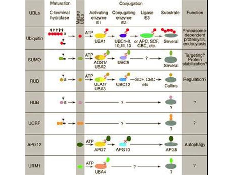 APC11 is also known as Anaphase promoting complex subunit 11, APC11, Cyclosome subunit 11, Hepatocellular carcinoma associated RING finger protein, and HSPC214. APC11 is a component of the anaphase promoting complex/cyclosome (APC/C), a cell cycle-regulated E3 ubiquitin ligase that controls progression through mitosis and the G1 phase of the cell cycle. APC11 may function to recruit the E2 ubiquitin-conjugating enzymes to the complex. APC11 interacts with the cullin domain of ANAPC2 and also interacts with UBE2D2. APC11 shows both a cytoplasmic and nuclear localization. APC11 is expressed at high levels in skeletal muscle and heart, in moderate levels in brain, kidney, and liver, and at low levels in colon, thymus, spleen, small intestine, placenta, lung and peripheral blood leukocyte. APC11 is a member of the RING-type zinc finger family and is auto-ubiquitinylated.Synonyms: Anaphase-promoting complex subunit 11, Cyclosome subunit 11, HSPC214, Hepatocellular carcinoma-associated RING finger protein