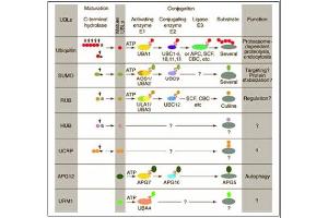 Cullins assemble a potentially large number of ubiquitin ligases by binding to the RING protein ROC1 to catalyse polyubiquitination, as well as binding to various specificity factors to recruit substrates. Cullin 1 is an essential component of the SCF (SKP1-CUL1-F-box protein) E3 ubiquitin ligase complex, which mediates the ubiquitination of proteins involved in cell cycle progression, signal transduction and transcription. In the SCF complex, cul1 serves as a rigid scaffold that organizes the SKP1-F-box protein and RBX1 subunits. Cul1 may also contribute to catalysis through positioning of the substrate and the ubiquitin-conjugating enzyme. Cul1 is part of the SCF complex consisting of CUL1, RBX1, SKP1 and SKP2, where it interacts directly with SKP1, SKP2 and RBX1. Cul1 also interacts with RNF7 and is part of a complex with TIP120A/CAND1 and RBX1. The unneddylated form interacts with TIP120A/CAND1 and the interaction negatively regulates the association with SKP1 in the SCF complex.Synonyms: CUL-1, CUL1, Cullin-1