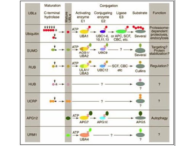 Cullins assemble a potentially large number of ubiquitin ligases by binding to the RING protein ROC1 to catalyse polyubiquitination, as well as binding to various specificity factors to recruit substrates. Cullin 3 is an essential component of the SCF (SKP1-CUL1-F-box protein) E3 ubiquitin ligase complex, which mediates the ubiquitination of proteins involved in cell cycle progression, signal transduction and transcription. In the SCF complex, cul3 serves as a rigid scaffold that organizes the SKP1-F-box protein and RBX1 subunits. Cul3 may also contribute to catalysis through positioning of the substrate and the ubiquitin-conjugating enzyme. Unlike Cul1 and Cul2, Cul3 seems not to be a part of the SCF complex consisting of CUL1, RBX1, SKP1 and SKP2. Cul3 also interacts with RNF7 and is part of a complex with TIP120A/CAND1, Cyclin E and RBX1.Synonyms: CUL-3, CUL3, KIAA0617