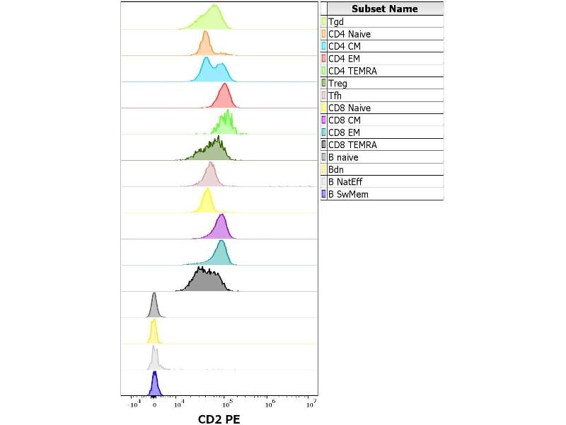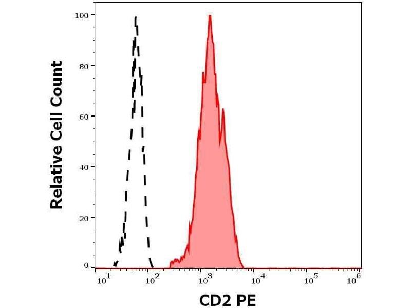 The antibody MEM-65 recognizes a unique extracellular epitope of CD2, a 50 kDa glycoprotein present on the human peripheral blood T-lymphocytes and NK cells, also expressed by all thymocytes.
