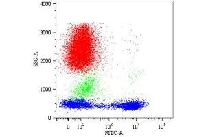 Flow cytometry: The reagent is designed for analysis of human blood cells using 20 μL reagent / 100 μL of whole blood or 106 cells in a suspension. The content of a vial (2 ml) is sufficient for 100 tests.