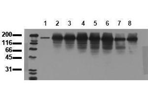 Western Blot: 0.5 μg/mL for HRPO/ECL detection. Recommended blocking buffer: Casein/Tween 20 based blocking and blot incubationbuffer. Other applications not tested. Optimal dilutions are dependent on conditions and should be determined by the user.