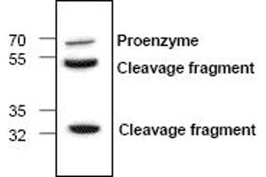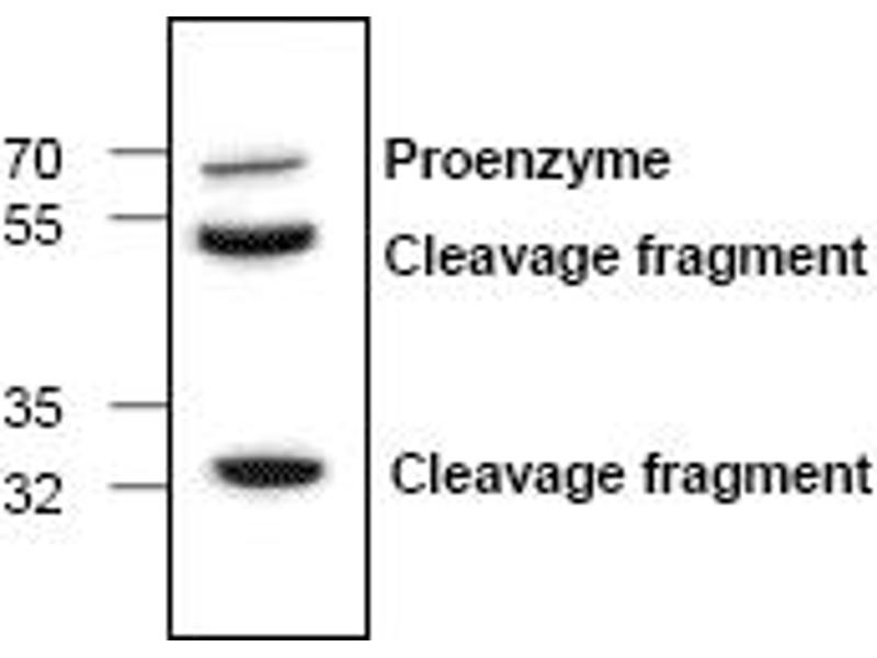 The Matrix Metalloproteinases (MMP) are a family of peptidase enzymes responsible for the degradation of extracellular matrix components, including collagen, gelatin, fibronectin, laminin and proteoglycan. Transcription of MMP genes is differentially activated by phorbol ester, lipopolysaccharide (LPS) or staphylococcal enterotoxin B (SEB). MMP catalysis requires both calcium and zinc. MMP-13 (also designated collagenase-3) is produced by breast carcinomas and degrades collagen type I, II, III.Synonyms: Collagenase 3, MMP13, Matrix metalloproteinase-13