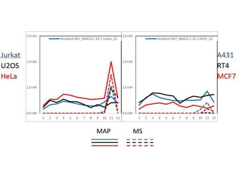 Immunogen: This protein A purified monoclonal antibody was produced by repeated immunizations with full-length recombinant human MAD1L1 protein.