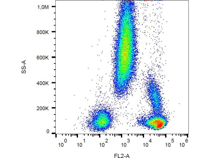 - Purified antibody is conjugated with R-phycoerythrin (PE) under optimum conditions. Unconjugated antibody and free fluorochrome are removed by size-exclusion chromatography.