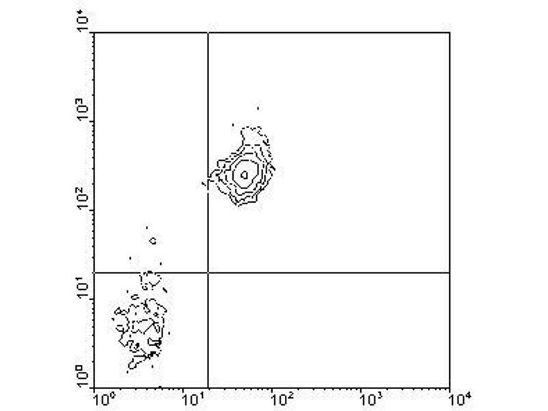 - Murine CD38, a type II transmembrane glycoprotein, is a bifunctional ectoenzyme capable of catabolizing nicotinamide adenine dinucleotide (NAD+) to cyclic ADP-ribose (cADPR), and then hydrolyzing cADPR to adenosine diphosphoribose (ADPR). It is expressed at high levels on the surface of peripheral B-lineage cells, and at low density on germinal center B cells from unimmunized mice. It has also been reported to be expressed at moderate levels on NK cells, a proportion of peripheral T cells, and a subpopulation of thymocytes which are mostly TCR+, CD4-, CD8-. Murine CD38 is also expressed by all Mac-1+ macrophages in the peritoneal cavities of unimmunized mice, but not by unstimulated bone-marrow-derived macrophages. Monoclonal antibodies to CD38 have been shown to induce B- and T-cell proliferation, protect B cells from apoptosis, and inhibit B lymphopoiesis.