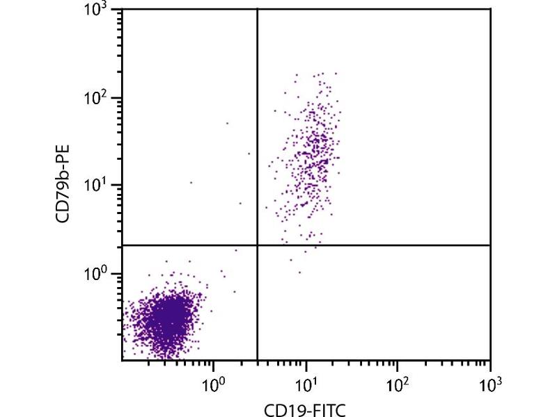 CD79 is a 23/21 disulfide-linked heterodimer composed of an chain (CD79a/mb-1) and a chain (CD79b/B29) that associates non-covalently with membrane immunoglobulin to form the B cell receptor (BCR) complex. Its expression is restricted to B lymphocytes, first appearing on the surface at the pro-B cell stage and remaining through all stages of B cell differentiation prior to plasma cells. Crosslinking of the BCR leads to B cell activation.