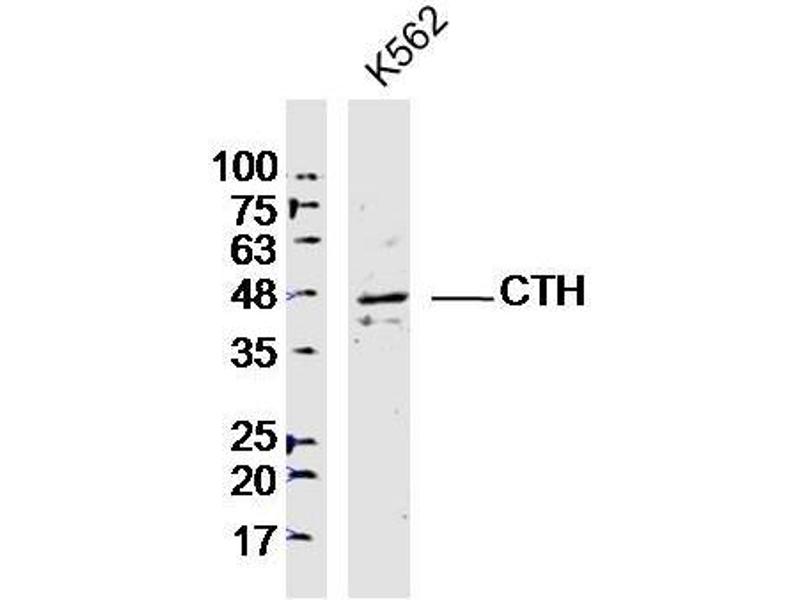 Background: Catalyzes the last step in the transsulfuration pathway from methionine to cysteine. Has broad substrate specificity. Converts cystathionine to cysteine, ammonia and 2-oxobutanoate. Converts two cysteine molecules to lanthionine and hydrogen sulfide. Can also accept homocysteine as substrate. Specificity depends on the levels of the endogenous substrates. Generates the endogenous signaling molecule hydrogen sulfide (H2S), and so contributes to the regulation of blood pressure.Defects in CTH are the cause of cystathioninuria (CSTNU). It is an autosomal recessive phenotype characterized by abnormal accumulation of plasma cystathionine, leading to increased urinary excretion.
