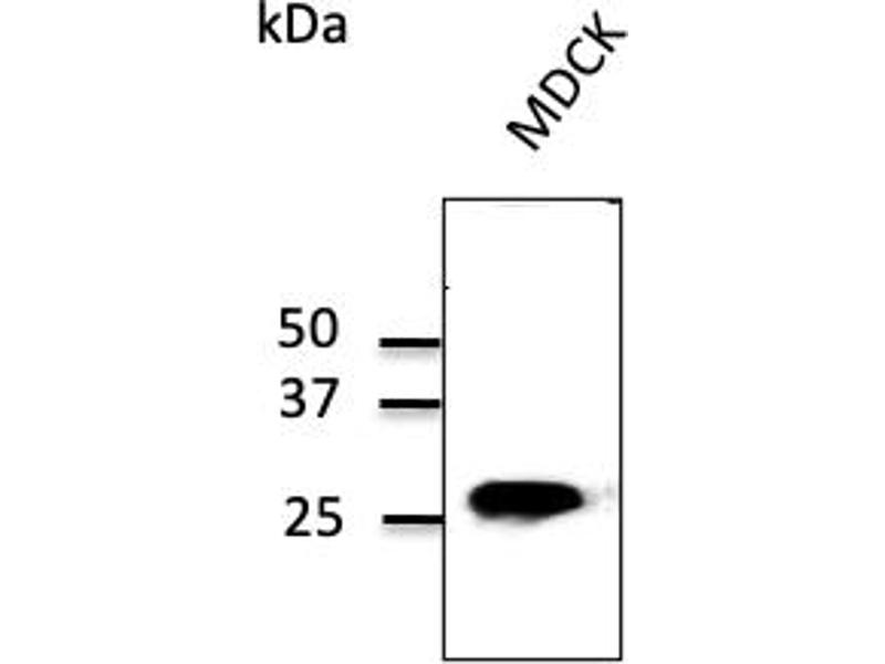 - Purified recombinant peptide derived from within residues 115 aa to the C-terminus of mouse Rab5b produced in E. coli.
