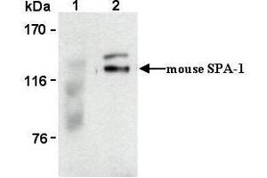 SPA-1 , signal-induced proliferation associated gene 1, encodes a 130 kDa protein (p130 SPA-1 ) with a domain related to Rap1 GTPase activating protein (Rap1GAP) at the N-terminus and to PDZ protein interaction domain followed by a leucine zipper motif at the C-terminus. It exhibits a specific GAP activity for Ras-related regulatory proteins Rap1 and Rap2, but not for other small GTPases. p130 SPA-1 was mostly localized at both the plasma membrane and the perinuclear membranous region co-localizing with Rap1 and Rap2. Expression of SPA-1 and rap1GAP genes tended to be segregate in various tissues, lymphoid and hematopoietic tissues expressing abundant SPA-1 transcript without rap1GAP , while those such as brain, kidney and pancreas exhibiting rap1GAP mRNA with little SPA-1 .Synonyms: GTPase-activating protein Spa-1, Signal-induced proliferation-associated protein 1, Sipa-1, Spa-1, p130 SPA-1